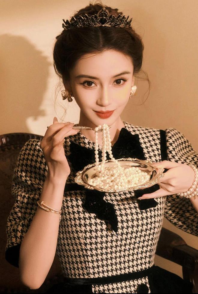 像杨颖佩戴的皇冠,不是说不可以戴,就是不太日常。可以把目光转到珍珠耳环、金属胸针、丝巾等这些小玩意。
