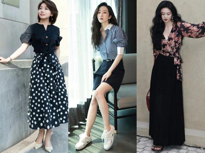 拎个拼色包包,脚上的浅棕鞋子带着点小设计,回头率肯定不低。或者你可以选一条蓝黑色的碎花裙。