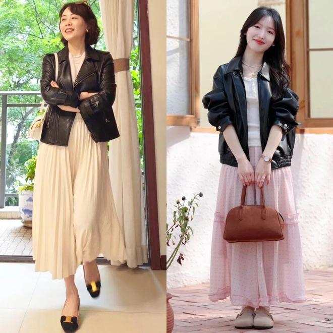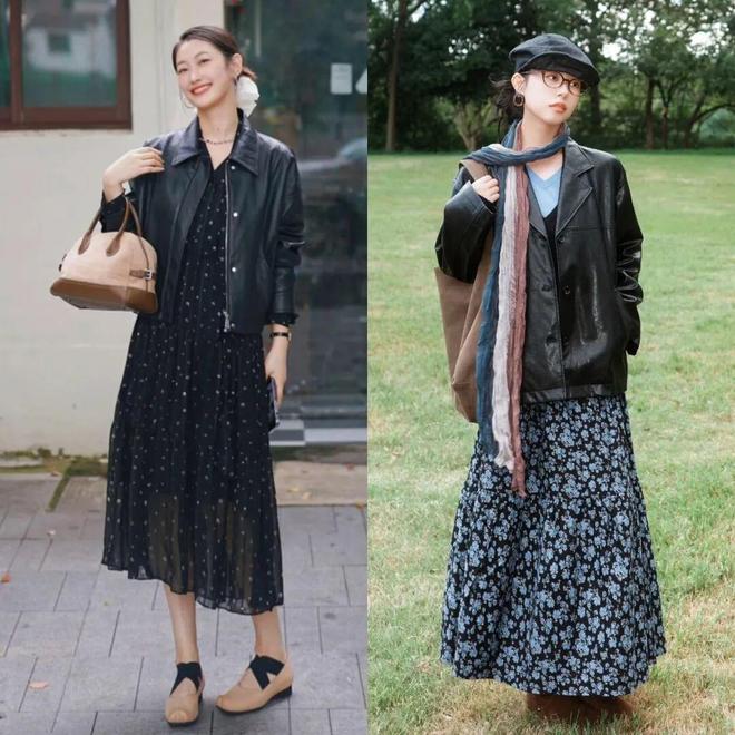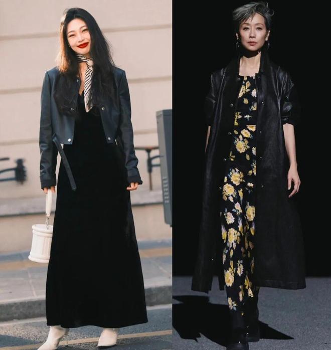 比如说,你可以穿一条黑色波点裙,搭配一件酷飒的黑色皮夹克,甜酷感瞬间拉满。