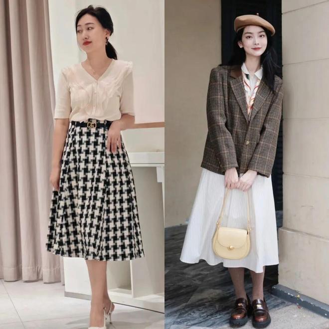 除了千鸟格纹元素的单品可以选之外,像那种小香风、格子裙的这类单品,也同样可以打造复古风。
