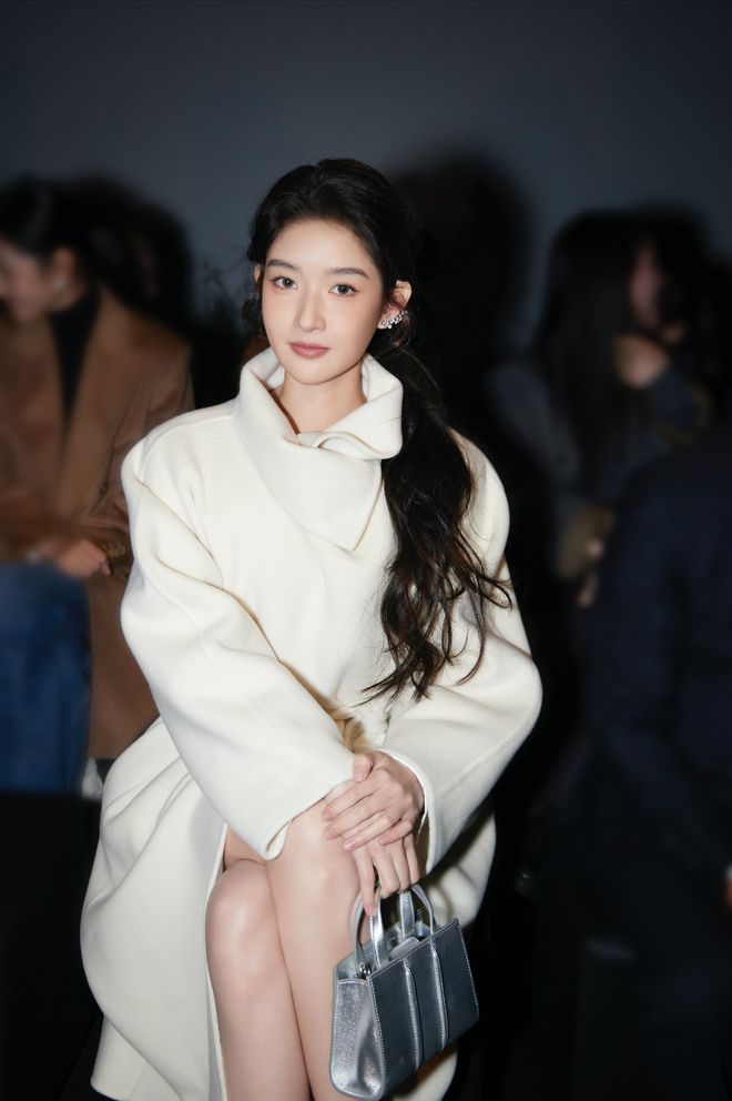 王玉雯以一袭2026早春系列白色羊绒长大衣出席,完美衬托其清丽脱俗的独特魅力。