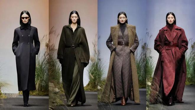 大衣作为主打单品款型丰富,包括厚实军装风大衣、英伦乡绅风双排扣大衣、奢华派克大衣、斗篷、宽松慵懒的围裹式大衣及晨袍式外套,部分款式更采用针织拼接背部与袖身,赋予别样质感。