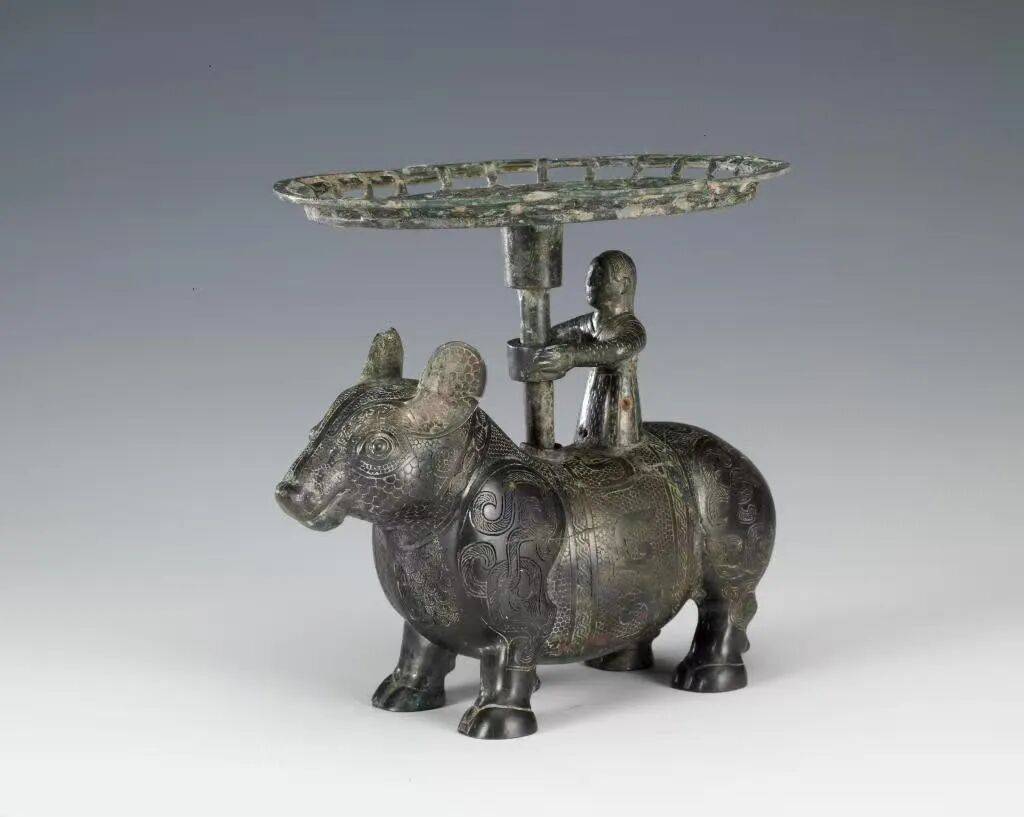 他,眉清目秀;它,憨态可掬——这对来自战国时期的“打伞”组合,共同组成了独一无二的铜牺立人擎盘。